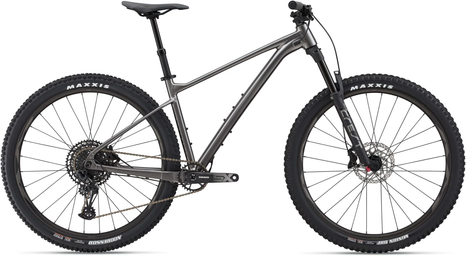 Smooth control: Giant Crest 34 suspension fork with 130mm of travel absorbs roots, rocks and ruts. Grippy, high-volume tyres boost traction on rugged terrain. And a dropper seatpost with handlebar remote lets you adjust saddle height on the fly for confident positioning on changing terrain.