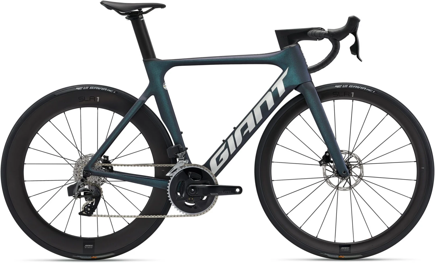 - Rims: Giant SLR 1 Carbon Disc Hookless WheelSystem, Front: 42mm (19mm Inner), Rear: 65mm (22mm Inner)