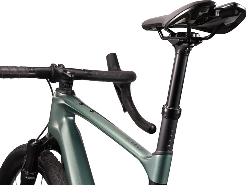 The Advanced composite frameset of the Revolt X Advanced Pro 2 is designed with suspension-optimized geometry and paired with a 40mm travel fork, delivering a smooth, controlled ride quality on rugged gravel and dirt. A flip chip on the rear dropout lets you adjust the wheelbase and increase tire clearance up to 53mm. You can use the included dropper post, switch to a proprietary Giant D-Fuse seatpost for added compliance, or use a standard 30.9mm round seatpost. A Contact SL XR D-Fuse handlebar further minimizes fatigue by absorbing shocks and vibrations.