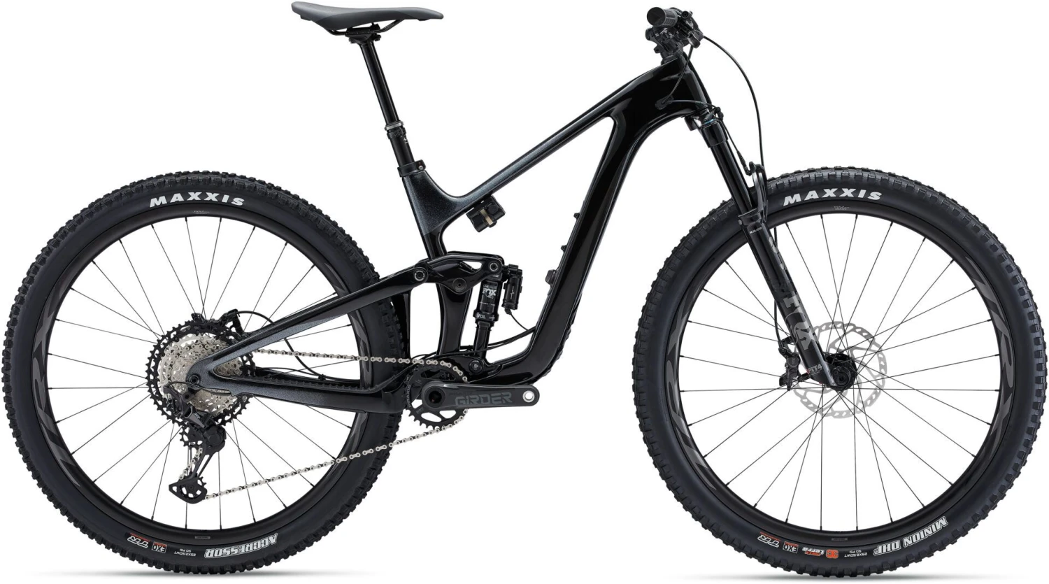 - Tyres: Front: Maxxis Minion DHF 29 x 2.5″ WT, 3C MaxxTerra, EXO, TR Rear: Maxxis Aggressor 29 x 2.5″, EXO, TR, Tubeless
